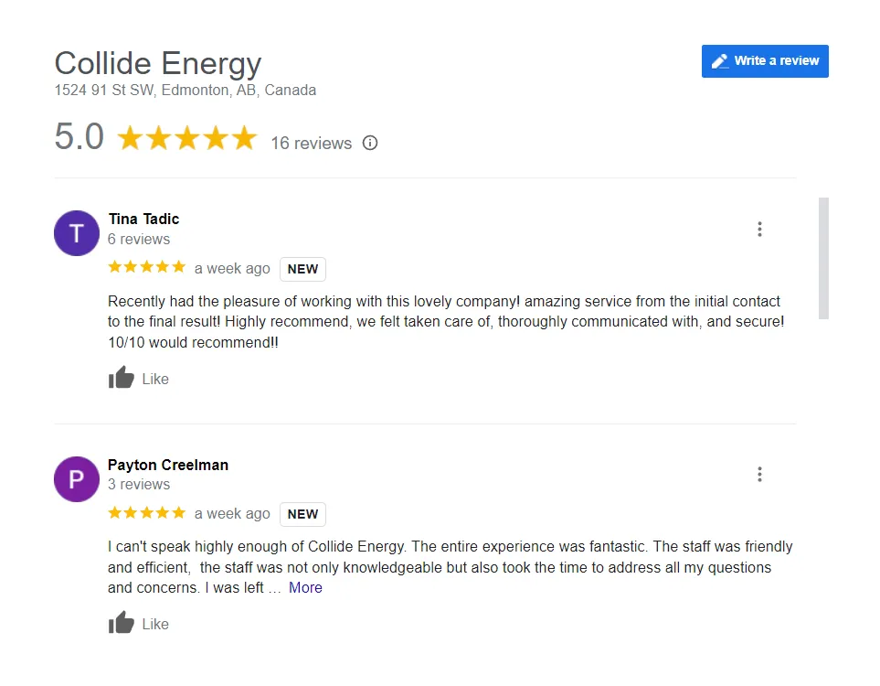 "Collide Energy was the only company that was actually $0 upfront. They even paid for our permits."